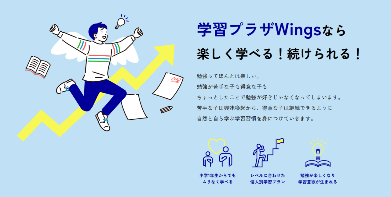 小学生・中学生・中高一貫校生のための個別指導塾 学習プラザWingsのサイトへようこそ。